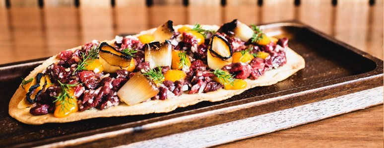 Damon Amos head chef owner has started his first solo venture on the Logan road precinct in Woolloongabba. The old heritage listed building has been transformed into a warm space with exposed brick, original steel beams, wooded furnishings and a copper wall that wows! With a central kitchen where chefs plate up dishes in full view of the diners His contemporary share style menu is divided into Omnivore and herbivore (Vegan) options with favourites such as “Gunpowder Salmon, Green Curry Black Ant’s & “ Emu Tartare, Cured Egg, Shallot” This pared with their unique wine list showcasing Australian small produces, using bio dynamic and minimal intervention techniques